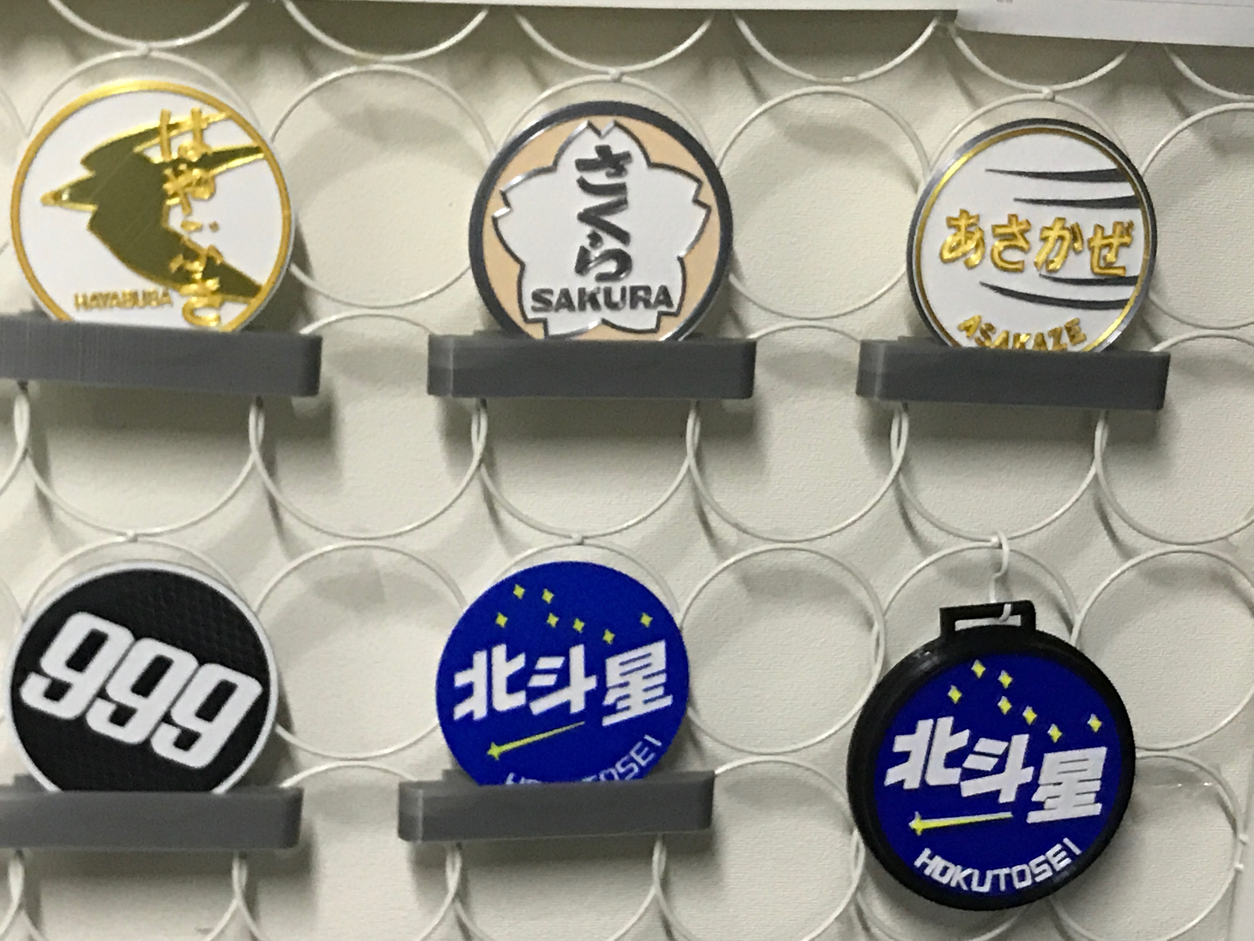 【特徴】3Dプリンタで造形したトレインヘッドマークです直径135mm 厚み3mm〜5mm各種800円(PLA樹脂造形物) 150円データ(STL形式又はGコード) ヘッドマークホルダー 【特徴】トレインヘッドマークを壁などに固定するための補助具です。直径150mm 厚み10mm500円(PLA樹脂造形物) 150円データ(STL形式又はGコード 他の造形物の取り扱いも(データの持ち込み印刷代行も可能)始める予定です詳しくは店舗にてお問合せください。 ホーム | ジオラマ・鉄道模型 | 3Dプリント工作 | 店舗案内 | ご予約・お問合わせ Copyright(C) GRAND CHARIOT All Right Reserved.